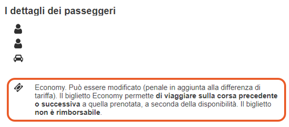 Alcuni tipi di biglietto consentono di viaggiare in anticipo o in ritardo. È possibile verificare il tipo di biglietto nell'e-mail di conferma (nella sezione Dettagli del passeggero). Clicca qui per inviare una nuova copia.