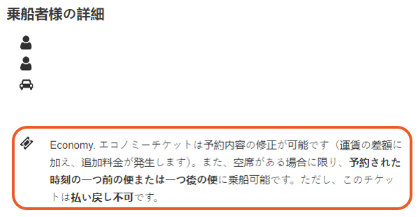 車両のトラブルや交通渋滞、国境での待ち時間の長さなどにより、旅行プランが予期せぬ影響を受ける可能性があることを理解しています。航空券の種類によっては、予約を変更することなく、早めの便や遅めの便に柔軟に変更できるものもあります。航空券の種類は、確認メール(旅客詳細セクション)でご確認いただけます。ここをクリックして、ご自身に新しいコピーを送信してください。
