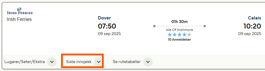 Du må ankomme havnen før innsjekkingen stenger. Den siste innsjekkingstiden for bestillingen din står i e-postbekreftelsen din. Selv om du allerede har sjekket inn på nettet, må du likevel komme deg til havnen før siste innsjekkingstidspunkt.