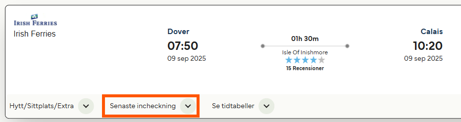 Du måste anlända till hamnen innan incheckningen stänger. Den senaste incheckningstiden för din bokning finns i din bekräftelse via e-post. Även om du redan har checkat in online måste du ändå komma till hamnen före den senaste incheckningstiden.